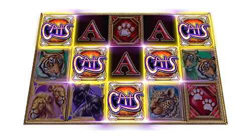 To start your Cats safari, choose your line bet and how many paylines you want active, and then start exploring. Lions may be the king of the jungle, but the panther is the king of the reels. Lining up 3 or more adjacent big cats across a payline awards a win, with the Panther symbols bringing the biggest rewards when you find 9 or more. With the Split Symbol feature, two Lion, Tiger, Cheetah, Panther, Cougar, and Paw Prints can appear in a single space and count as two symbols. When the wild Cats symbol fills in for a big cat symbol, it will always count as a Split Symbol. Paw Prints are scatter symbols and don’t need to land on a payline to lead you to a prize. 4 Paw Prints will award 2x the total bet, and 5 or more will start the Free Spins Bonus. The cats are on your side, making it easy to play and even easier to win, so join the expedition and get ready for a wildly rewarding time!