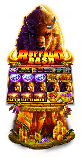 Pick your bet, spin the reels, and run with the herd on Buffalo Bash! When matching symbols land on the payline, you win! Buffalo symbols award the highest line win and wild Buffalo Coins can substitute to make wins even more valuable; land one in a win for a bonus multiplier or multi-jackpot. For another way to win a multi-jackpot, track down 4 or more Diamond symbols in a single spin and collect the Diamond Pot. In the meantime, watch out for Scatter symbols. When you spin up 3 or more, you’ll enjoy 5 free spins in the Wild Rush Free Spins bonus. Winning is wild and easy on the wild frontier, so hoof it to Buffalo Bash and start your stampede to victory!